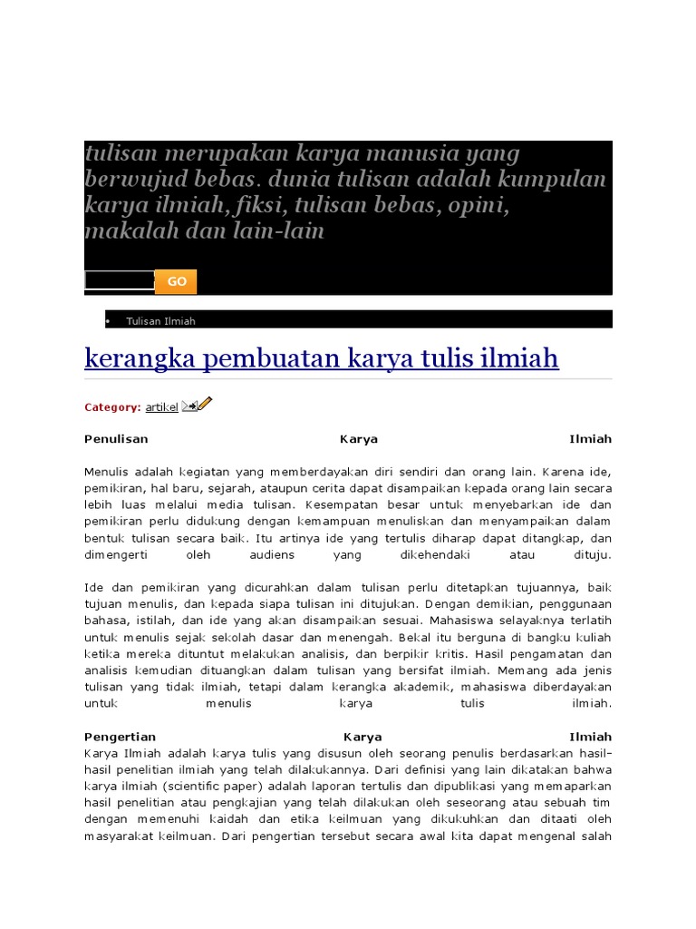 Seperi yang unkapkan oleh arifin (1987:1). Dalam karya tulis ilmiah (semi ilmiah) seperti artikel, editorial, opini, tips dan resensi buku disebut karya tulis a. Karya tulis ilmiah merupakan bentuk tulisan untuk berbagi karya hasil penelitian anda sendiri karena itu, arya tulis ilmiah sangat penting bagi evolusi sains modern, di mana karya seorang. Karya tulis ilmiah adalah karya pemikiran yang ditulis atas hasil penelitian/kajian dan didukung dengan sajian fakta/data/bukti empiris dan ditulis dengan mengikuti kaidah penulisan ilmiah. Apakah anda salah satu orang yang merasa bingung dalam menentukan judul karya ilmiah yang tepat untuk disiplin ilmu anda?